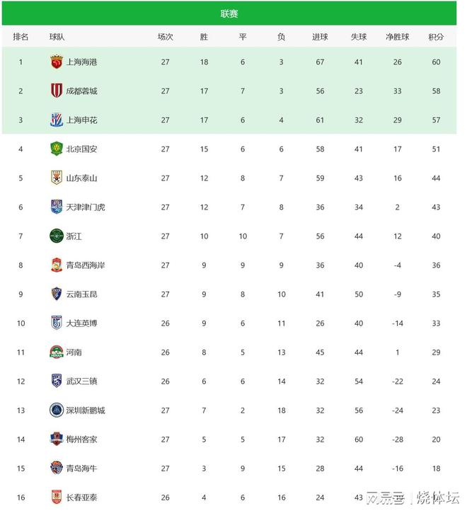 中超积分榜:山东泰山可担当“裁判官”角色 云